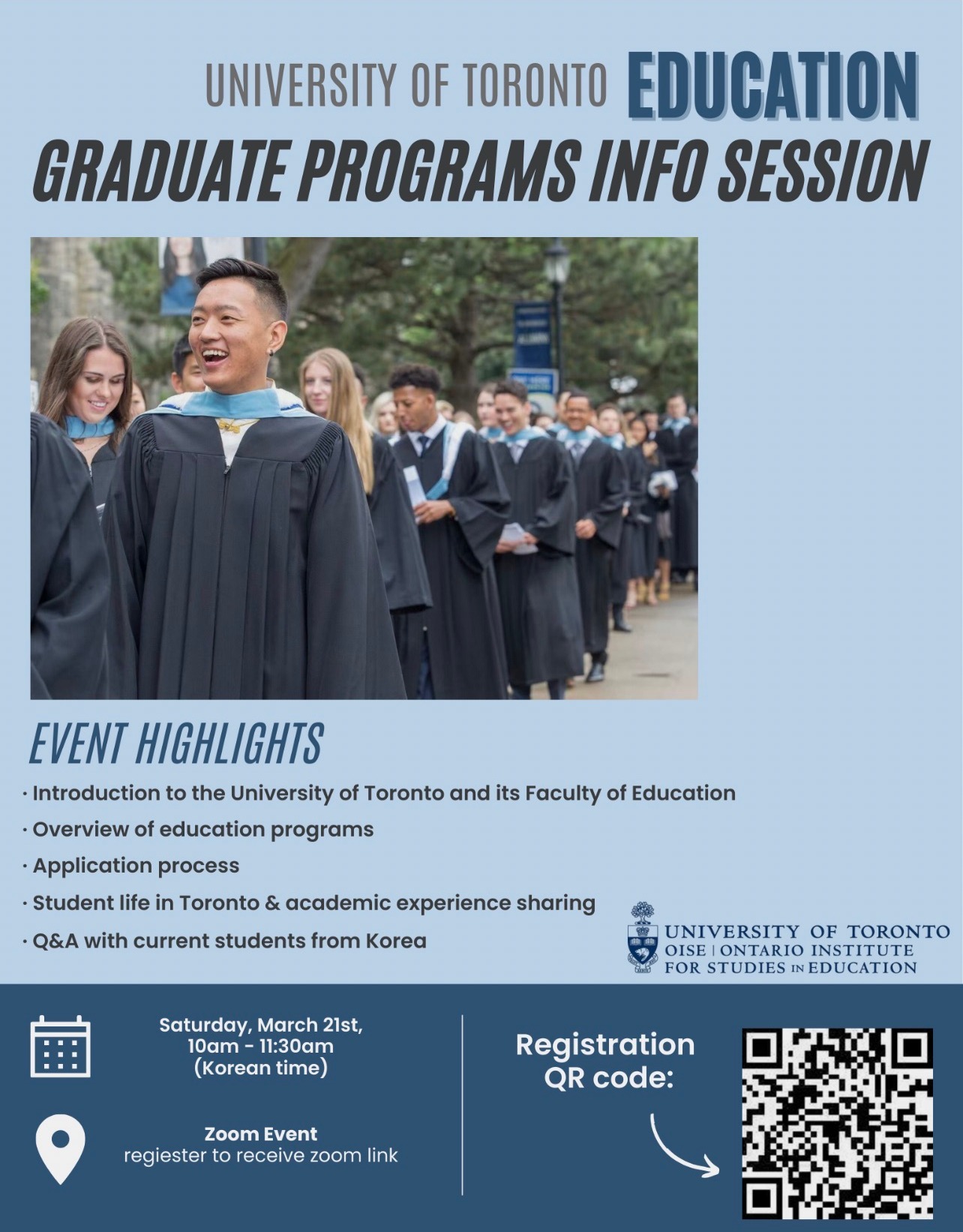이번 설명회는 한국 학생들을 위한 전용 세션으로 준비되었으며, OISE 진학을 희망하는 학생들에게 매우 유익한 정보가 될 것입니다.
